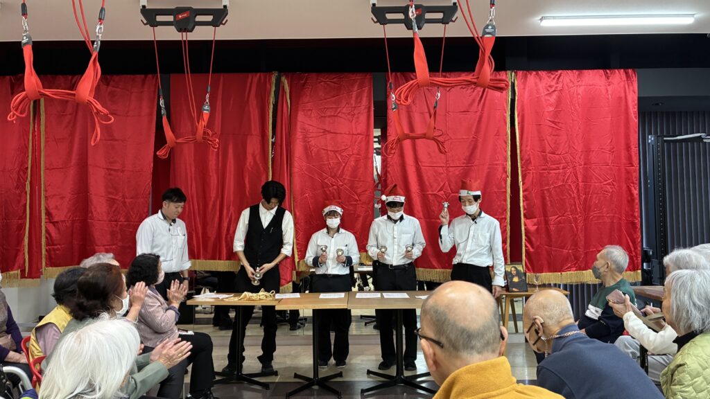 そのあと、猛練習したスタッフによるハンドベル演奏は…